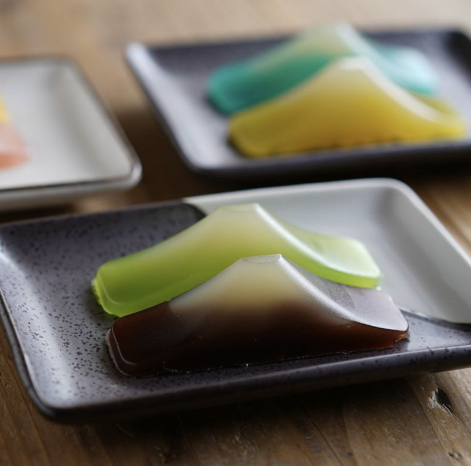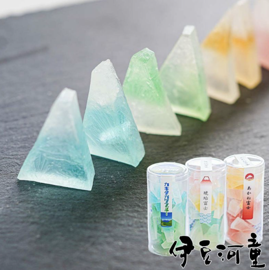 伊豆産の天草を使い、富士山型にかたどった琥珀糖は、地元の沼津商業高校の生徒さんと共に5年の年月をかけて開発した商品です。