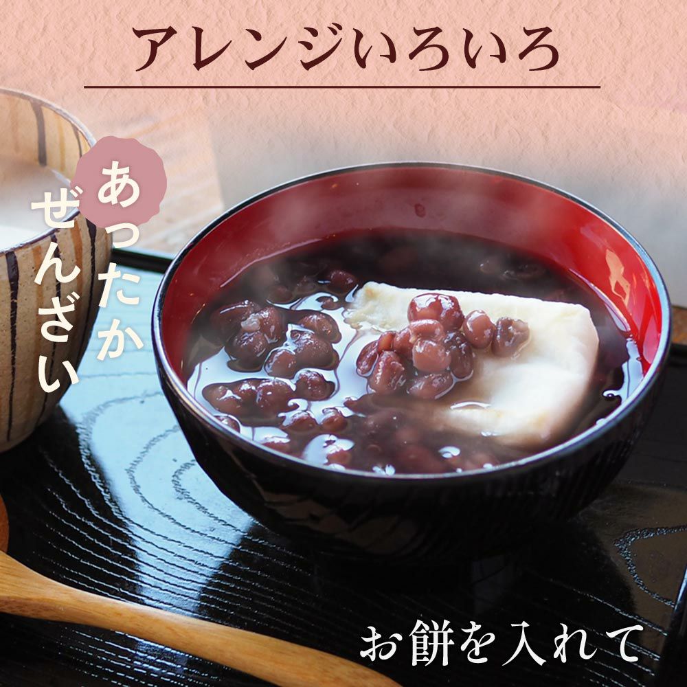 サッと温めるだけ。手軽に気軽にお店で食べるような【甘味処のぜんざい】を、ご自宅で味わっていただけます。あんこ好きの方、あんみつ好きの方、和スイーツでほっこりしたい方、お正月にも手軽に、ぜひお試しください。