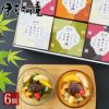 ・フルーツ黒蜜あんみつ(角心太95g、餡35g、蜜25g、フルーツ)×2、フルーツ白蜜あんみつ(角心太95g・餡35g・白蜜20g、フルーツ)×2、フルーツお抹茶かさね(抹茶入り角心太95g、餡35g、抹茶蜜25g、フルーツ)×1、フルーツほうじ茶あんみつ(ほうじ茶入り角心太95g、餡35g、ほうじ茶蜜25g、フルーツ)×1 計6個