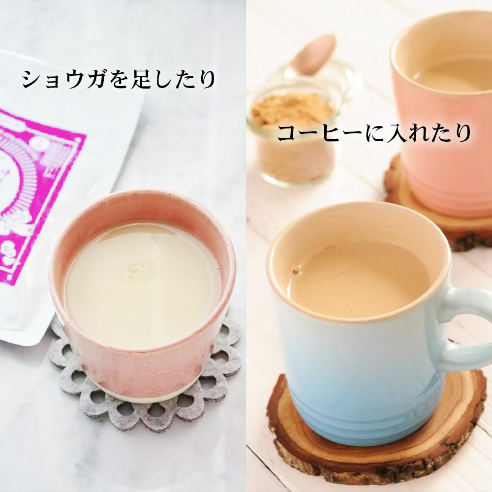 2.ショウガの絞り汁、甘酒1パック、お湯(約70cc)を混ぜて完成!
