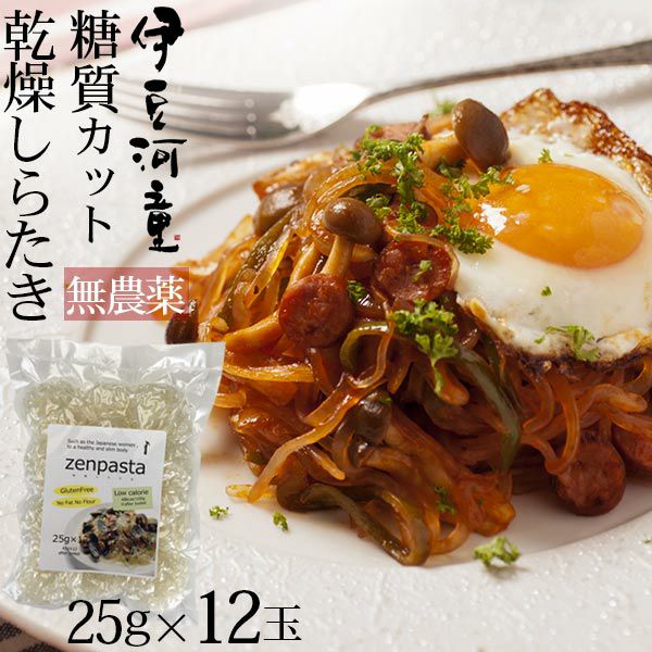 ゼンパスタは、乾燥しらたきとも言います。健康を意識する方のダイエットやカロリーカット、糖質カットにおすすめの食材です。しらたき(こんにゃく)ですが、独特のにおいもなく、色々な麺料理にアレンジ自在、メニューのバリエーションも豊富です。