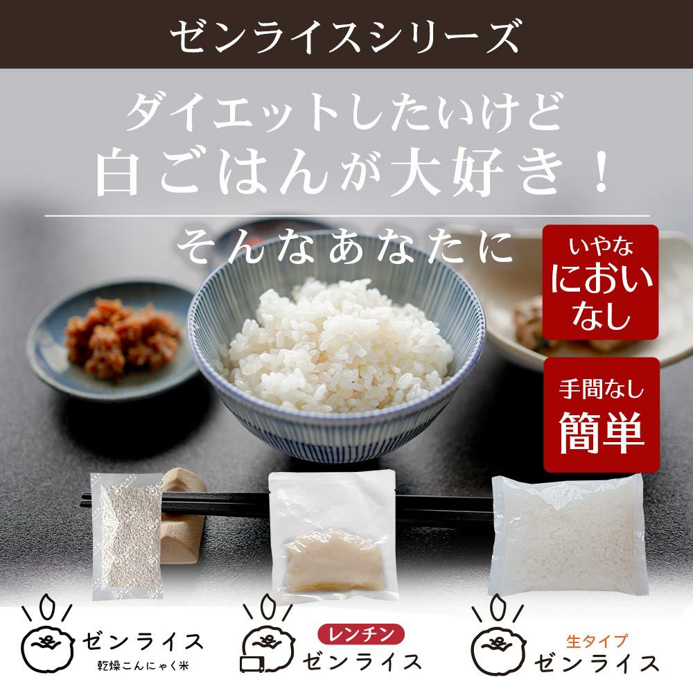 他の画像を見る こんにゃく米を食べてカロリーカット!こんにゃくごはんダイエット米 生ゼンライス 生タイプこんにゃく米 30日分・こんにゃくごはんダイエット米 送料無料 おすすめ こんにゃくの日 1回のみ・定期 初回特別価格あり 販売価格 ¥ 3,625 税込 詳細を見る お気に入りに登録
