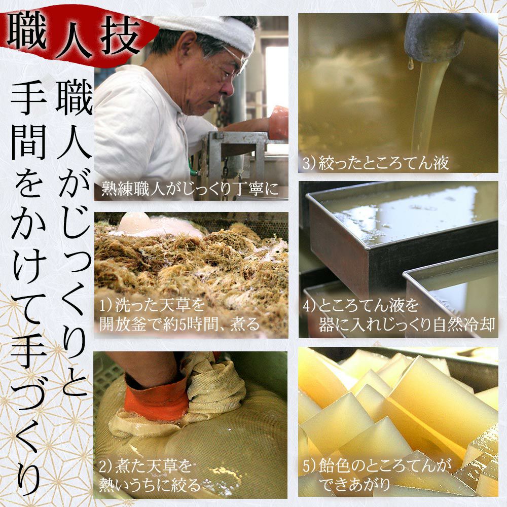 使う天草の量は、通常の2倍。たっぷりの量を使いコシのある、磯の香りも爽やかなところてんができあがります。伊豆半島の天草は高級天草として知られていて、他の天草よりも2倍ほど高値となっています。