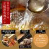 鹿児島県枕崎産本枯れ節、国産どんこ(乾しいたけ)北海道産昆布からとっただしに、白しょうゆを加え、具材の色合いを美しく仕上げます。ほんのりと香りが広がります。レトルトおでんとは一味もふた味もちがうお店のおでんです。