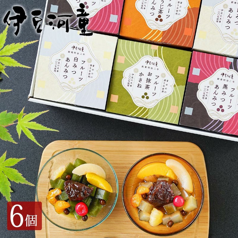 伊豆産天草100%使用 フルーツあんみつ セット ギフト プレゼント ギフト にも プレゼント に フルーツあんみつ 6個 セット みつまめ 餡蜜 黒蜜 抹茶 ほうじ茶 白蜜 あんみつ