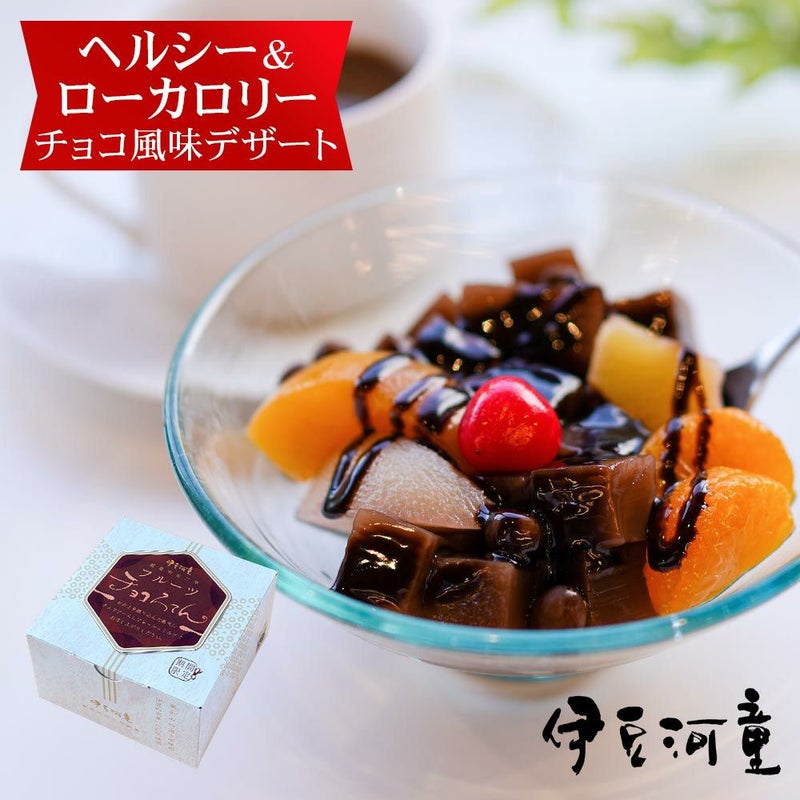 ヘルシーでローカロリーのチョコ風味デザートです。「フルーツをトッピングするだけ」で「ぱっと華やか」なフルーツチョコろてんで、ご自宅でも「お店で食べるようなデザート」をお楽しみください。
