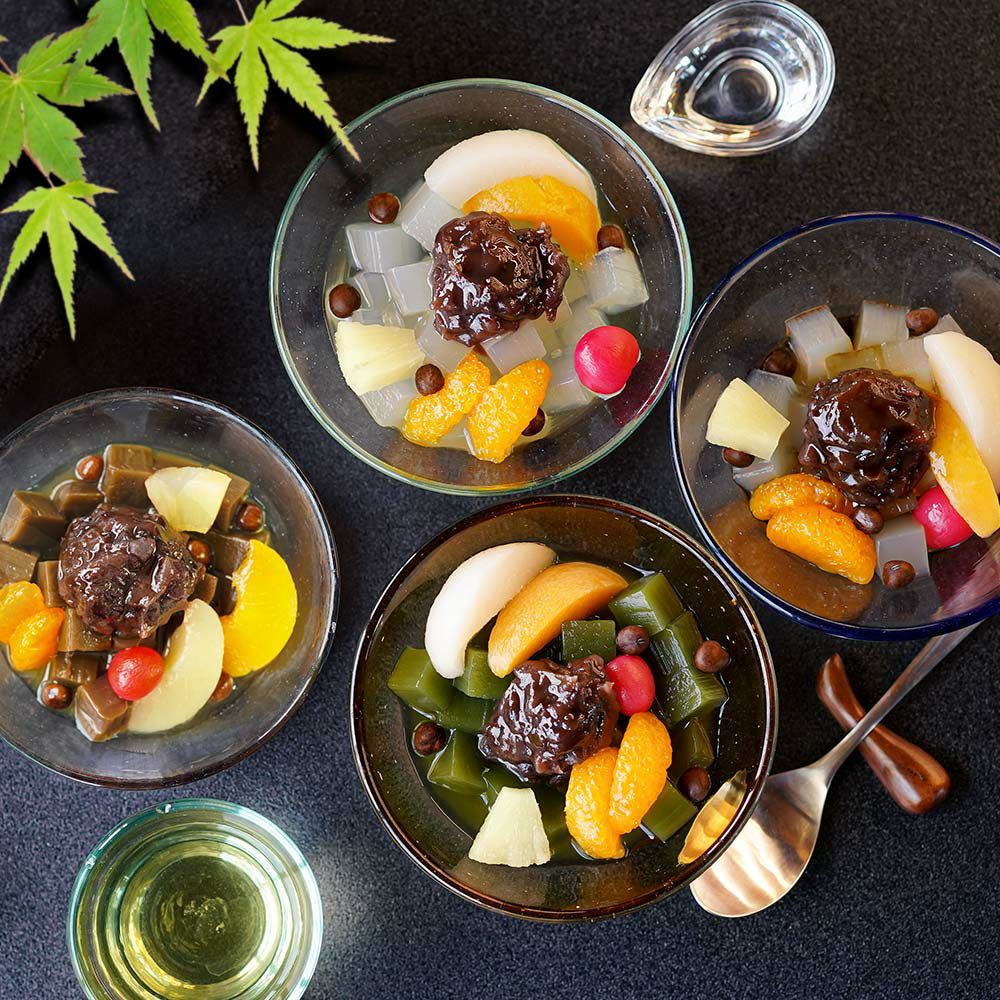 伊豆天草※100%のところてんで作る【伊豆河童のフルーツあんみつ】は、蜜や餡を選びぬいた自慢のあんみつです。洋菓子よりカロリーも低く、食物繊維も豊富で【健康】や【美容】を気にする方にも喜ばれます。