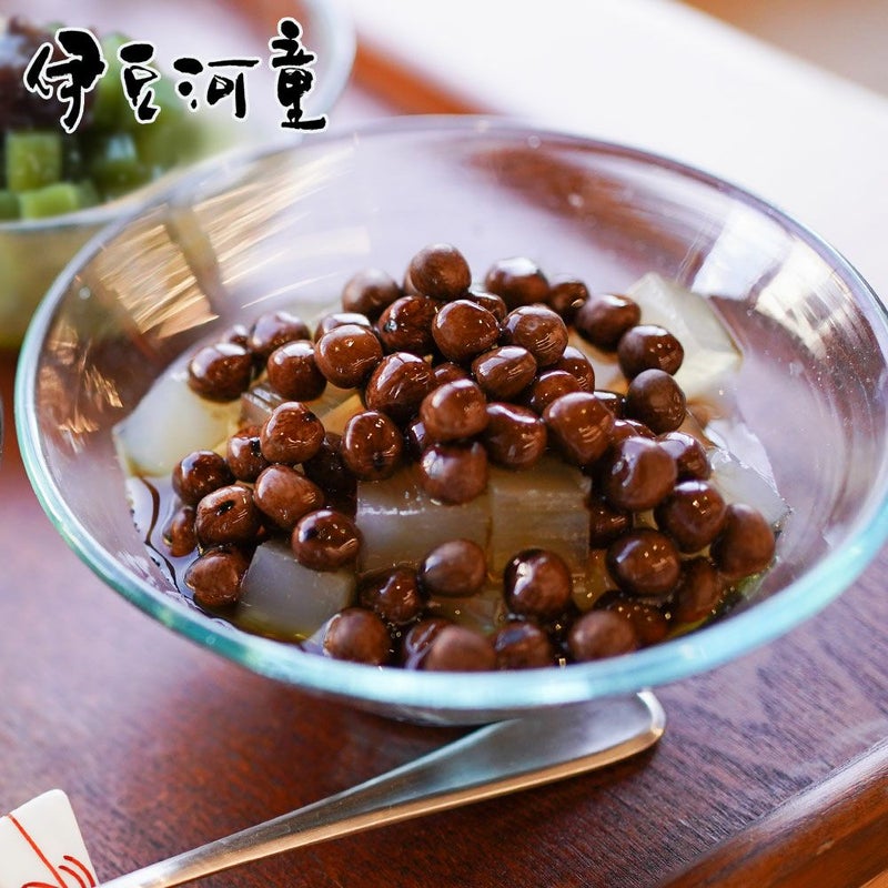 伊豆天草※100%でつくるところてんに、北海道産赤えんどう豆をたっぷりのせて、沖縄産黒蜜をかけて召し上がれ。
