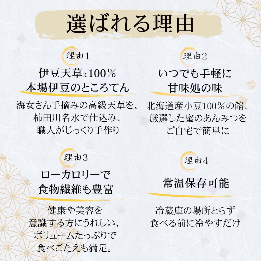 他の画像を見る 伊豆天草 100% ところてんを使ったあんみつ ギフト プレゼント にも ギフト プレゼントにも あんみつ6個 豆てん お抹茶かさね あんみつ 特別 セット 送料無料 ギフト好評品 販売価格 ¥ 4,706 税込 詳細を見る お気に入りに登録
