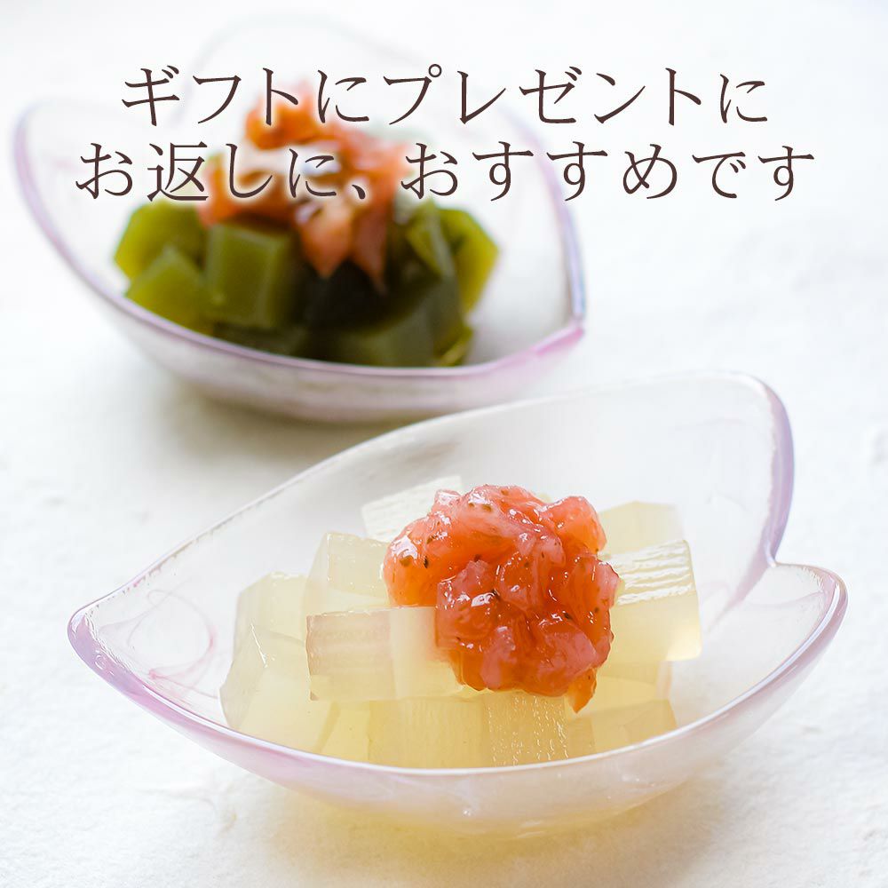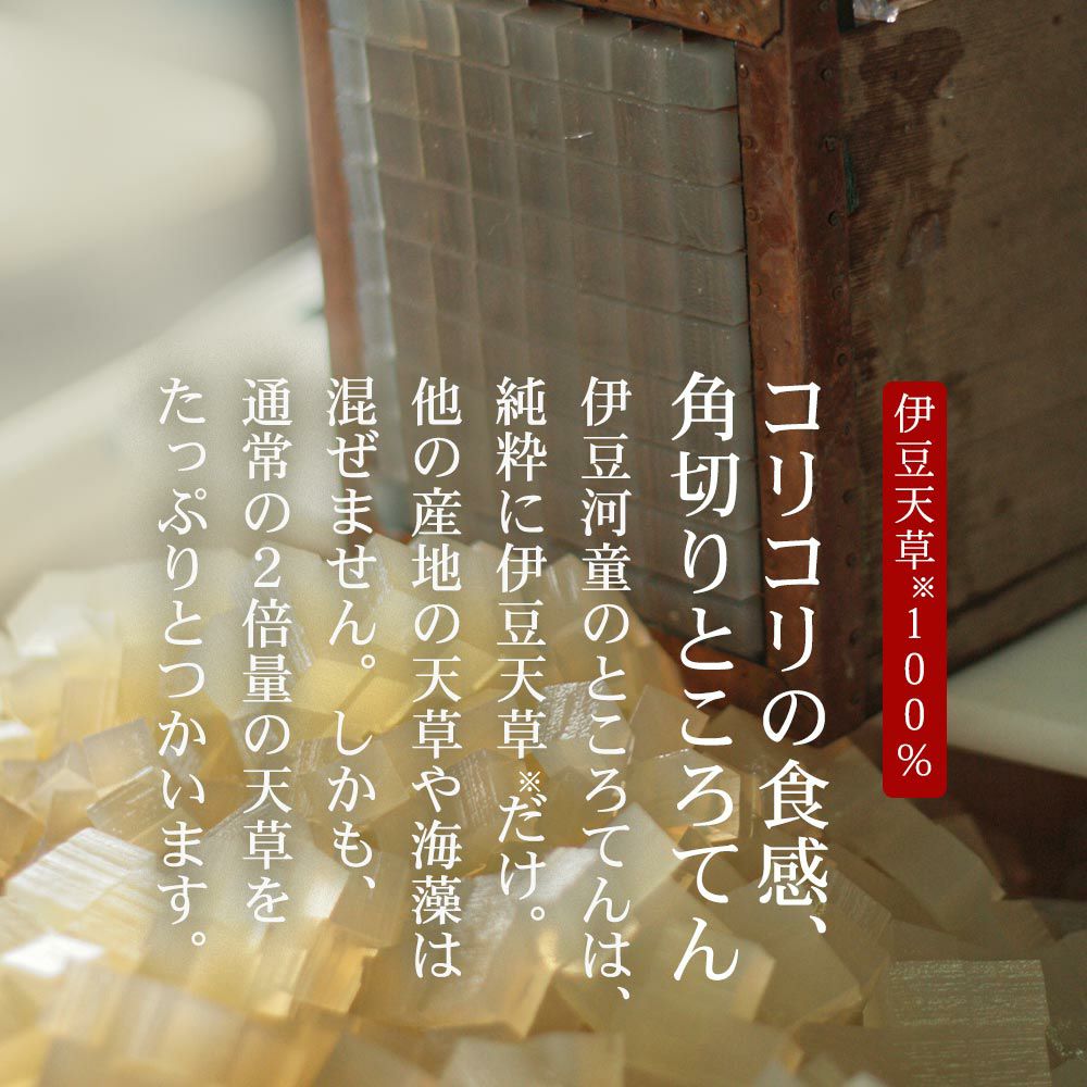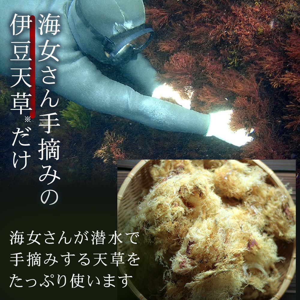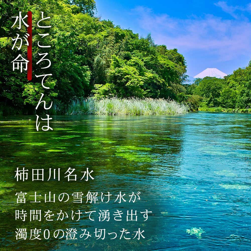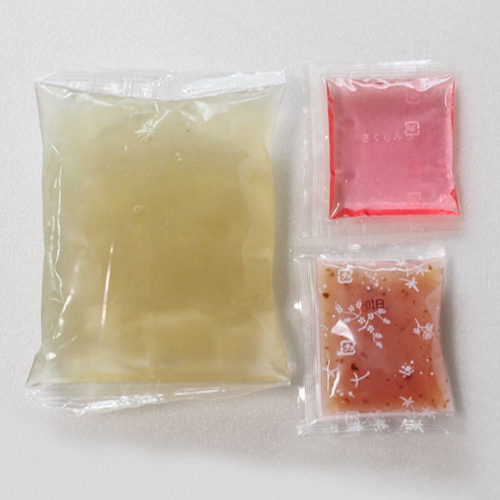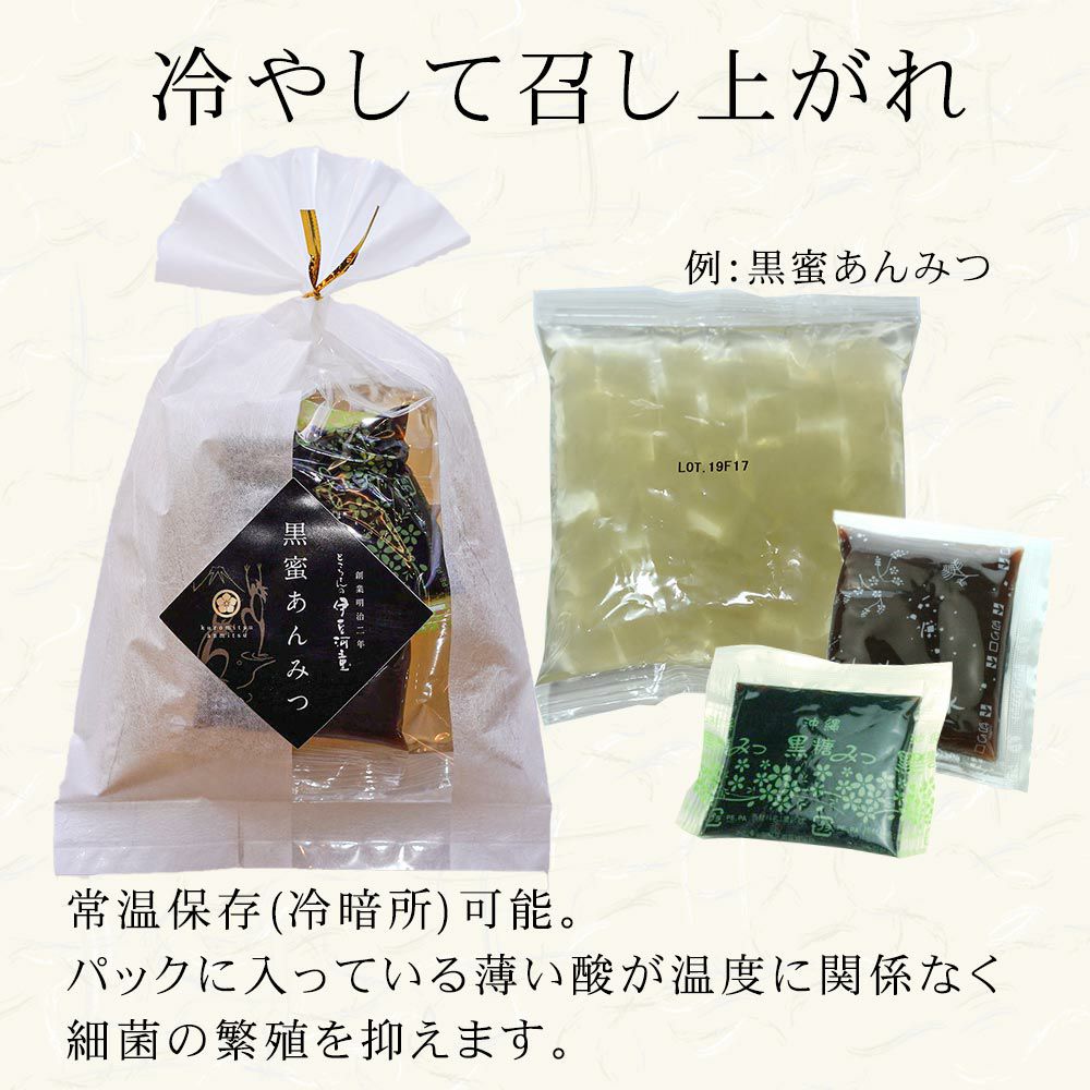 京都老舗の製餡所特製のさくら餡は、塩漬けの桜の葉を刻み練りみ、ほんのり桜の香りがします。伊豆河童の角切りところてんにぴったりと合います。