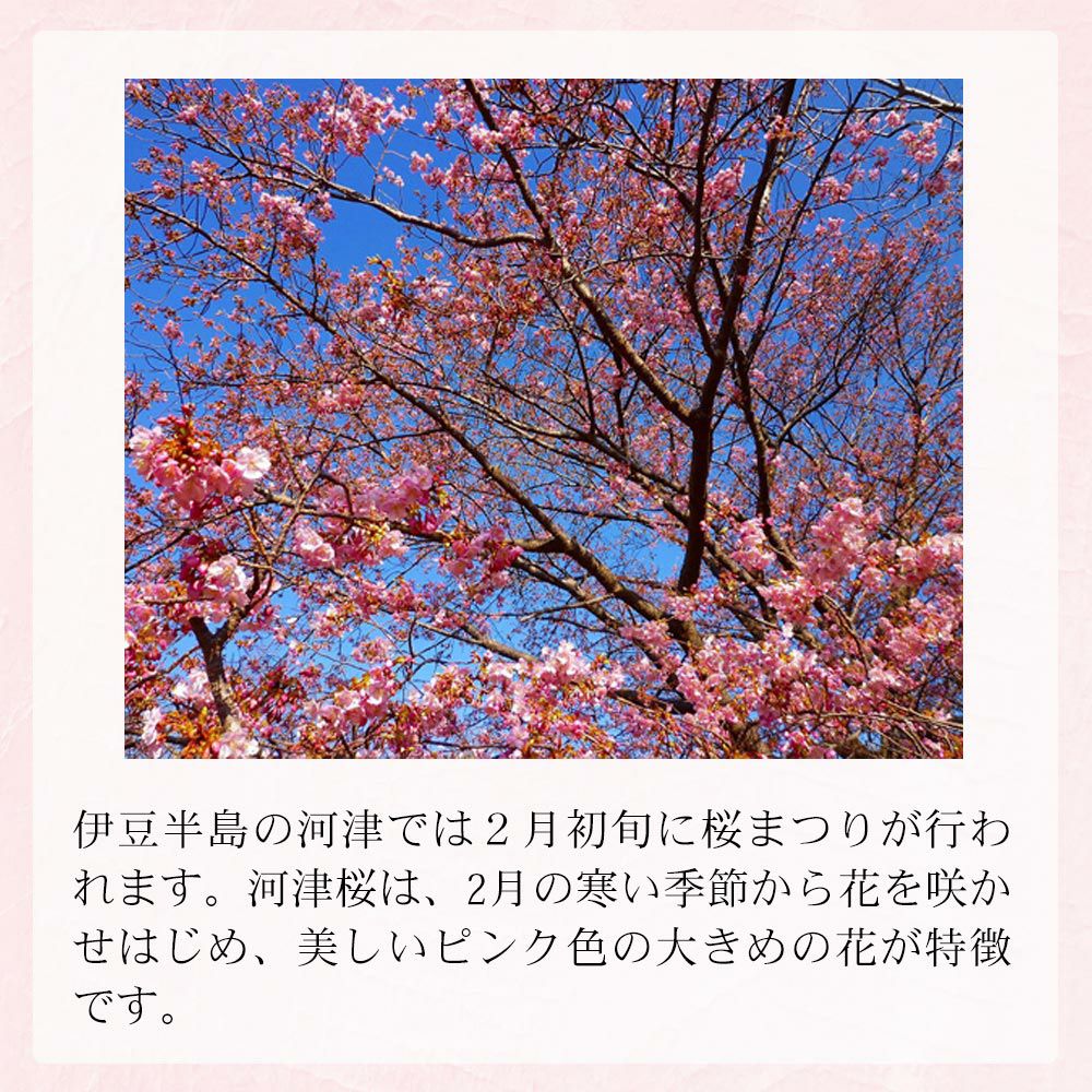 伊豆の早春を彩る河津桜のような、可憐な桜色の春スイーツをお楽しみください。ご自身へのご褒美、ご親戚や職場関係の人、大切な方への季節のギフト、ご贈答品、歓送迎会の品、誕生日のプレゼント、卒業祝い、入学祝い、お礼の品などに喜ばれます。