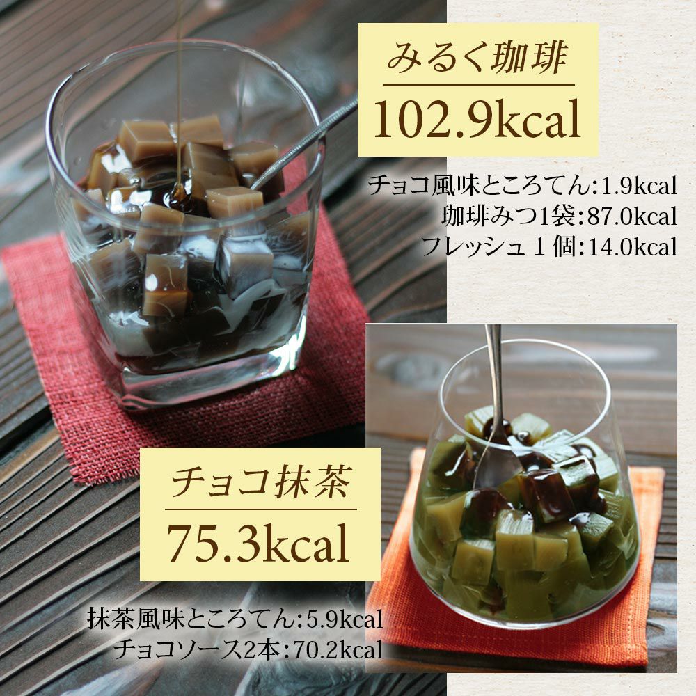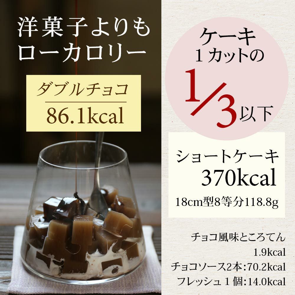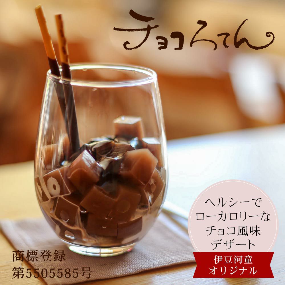 伊豆河童オリジナルのチョコレート風味のところてんです。チョコソース、珈琲蜜などをかけてさっぱりとどうぞ。食物繊維を含むヘルシーなデザートとして、バレンタインやホワイトデーに喜ばれています。