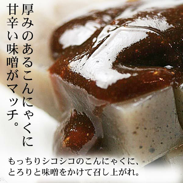 もっちりシコシコのこんにゃくに、ぴったりあう味噌です。ごまが入った香ばしい味噌です。