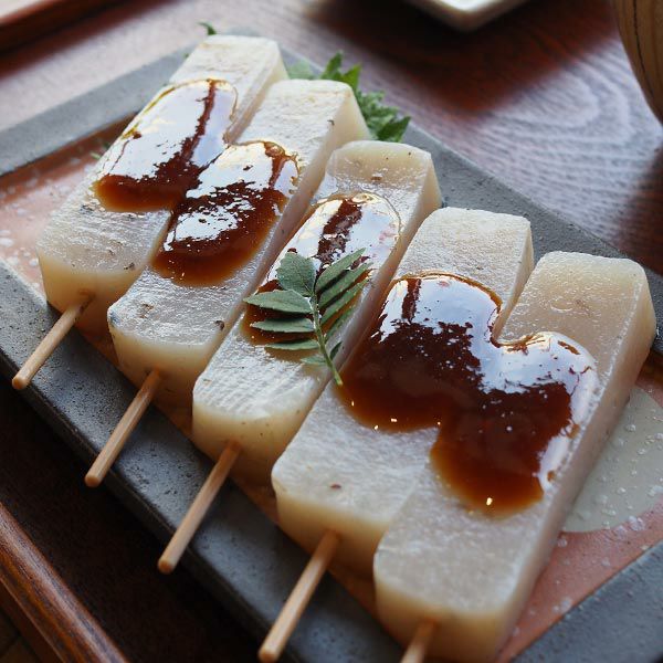 季節によっては国産のこんにゃく芋を使います。生芋の旨み・風味、手作りだからほどよく入る気泡でモチッとプリッとした歯ごたえのこんにゃくが出来上がります。