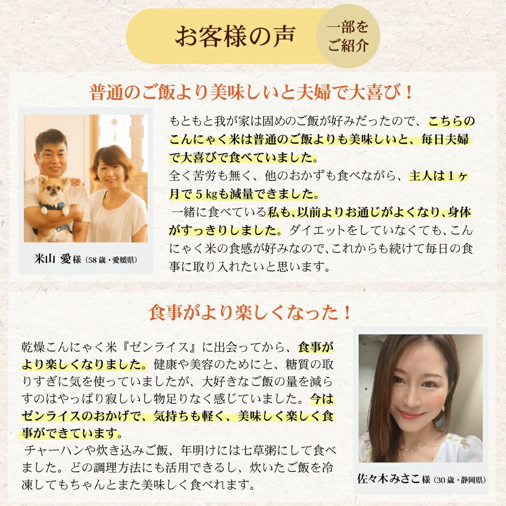 他の画像を見る リピート 1000g ご家族でも ごはん好きの 置き換え ダイエット ゼンライス 1キロ 1000g カロリー50%カット 乾燥こんにゃく米 無農薬 送料無料 送料無料 こんにゃくの日 1回のみ・定期 初回特別価格あり メーカー希望小売価格 ¥ 6,000 のところ 販売価格 ¥ 3,465 税込 詳細を見る お気に入りに登録