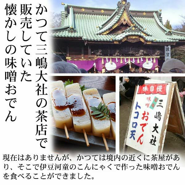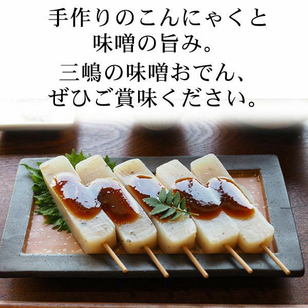 他の画像を見る 三嶋の味噌おでん 5本入り 6袋セット 令和7年産こんにゃく芋使用 串おでん 田楽味噌付 伊豆河童 送料無料 こんにゃくの日 販売価格 ¥ 2,226 税込 詳細を見る お気に入りに登録