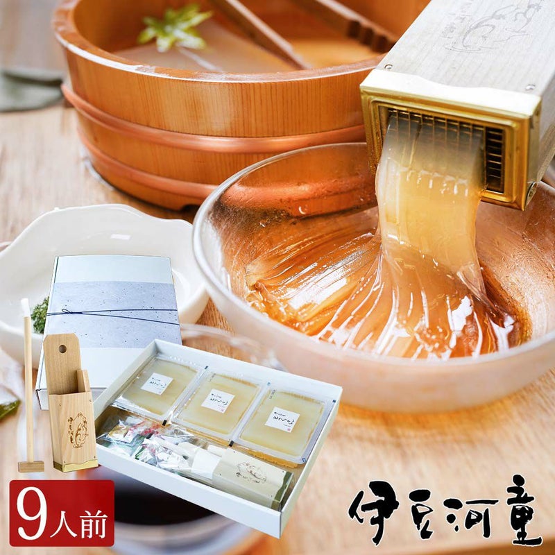 つるりコリコリと爽やかなのどこし、突き立てのところてんは格別な美味しさです。オリジナル突き棒がついた「伊豆河童ところてんギフト」は、本場のところてんを自分で突いて食べられます。