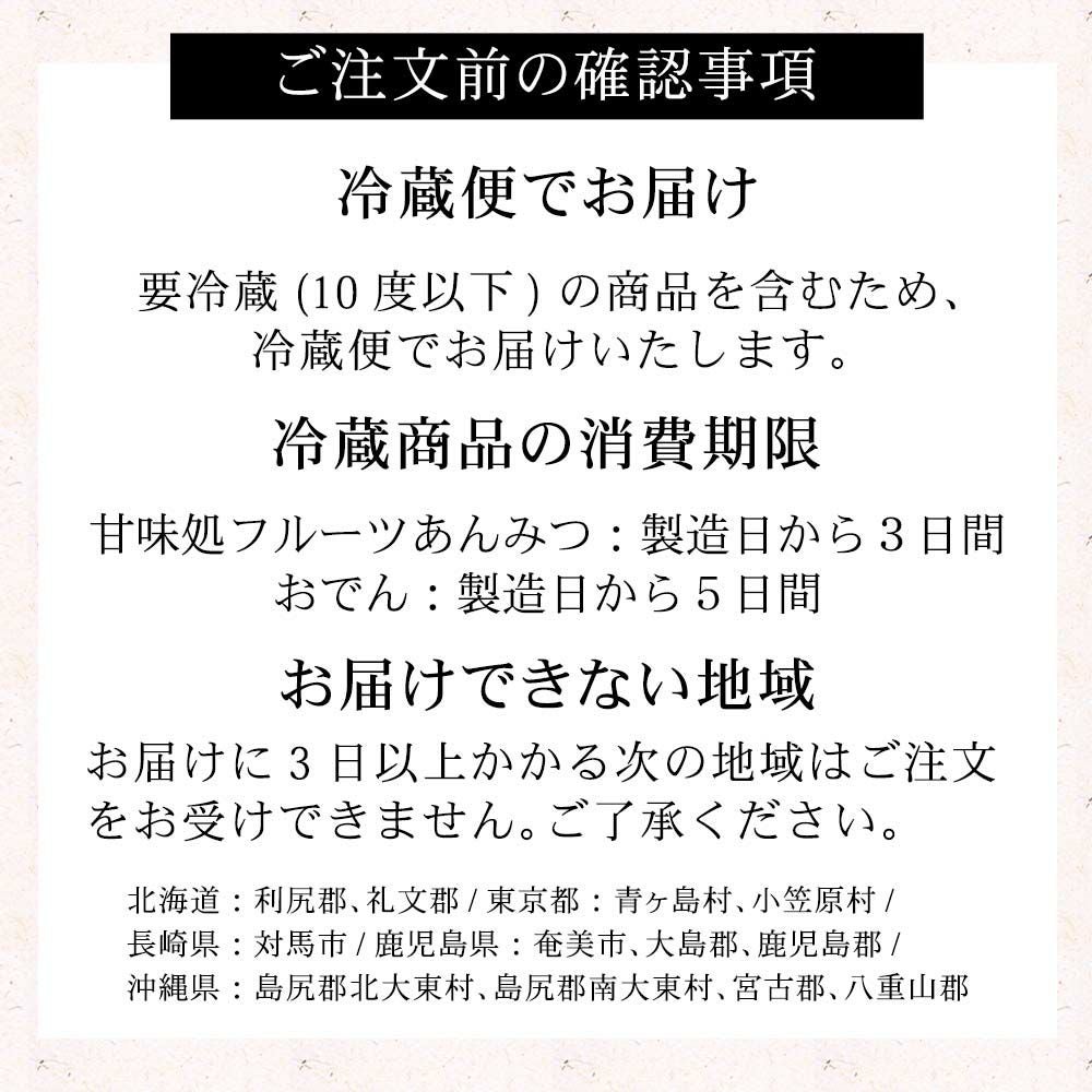 他の画像を見る 和スイーツ あんみつ 喜ばれる ギフトに ギフト にも あんみつ 4個 セット プチギフトに 最適 竹かご入り スイーツ 贈り物 プレゼント 送料無料 ギフト好評品 販売価格 ¥ 3,918 税込 4種類のあんみつを詰め合わせ。当店のあんみつは、角切りにしたところてんを使っております。寒天よりもしっかりとした食感、嫌みのない甘さが好ましいと、多くのお客様からご支持を頂戴しております。贈り物にふさわしく、竹籠に入れオリジナル風呂敷でお包みいたします。 詳細を見る お気に入りに登録