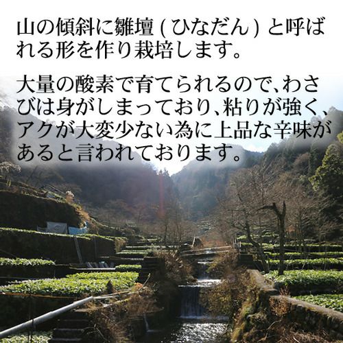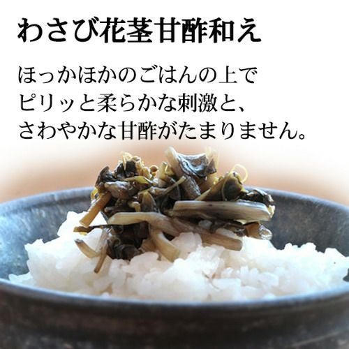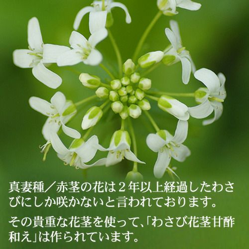 他の画像を見る 貴重!伊豆わさび花茎 甘酢漬け 筏場 販売価格 ¥ 1,404 税込 在庫切れ 春先、わさびの花が咲くこの時期だけの、貴重な花の生茎(冷凍ものではありません)を新鮮なまま甘酢と和えました。花が咲く前のやわらかい花茎になります。口に広がる甘酸っぱい独自の三杯酢の味に、みずみずしいわさびの花茎の歯応え、最後にツーンと鼻に抜けるわさびがもつ独特の味を是非お楽しみください。 詳細を見る お気に入りに登録